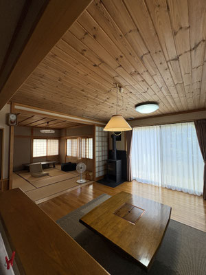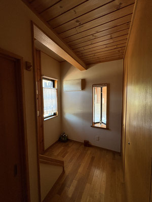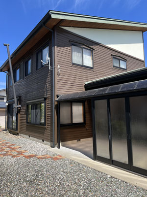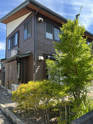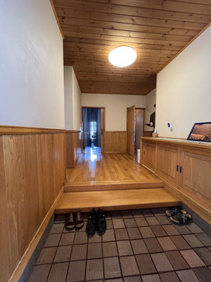 無垢材が多く使われています。 南向き片屋根で積雪対策がされています。 |